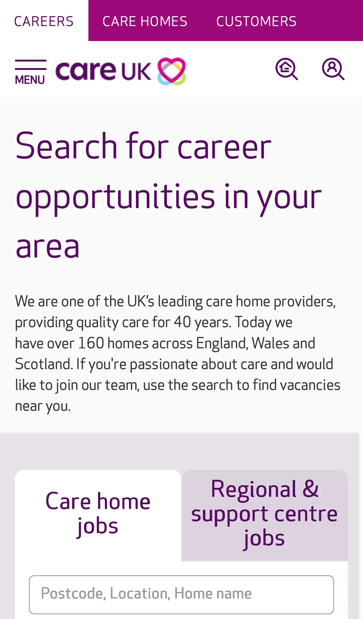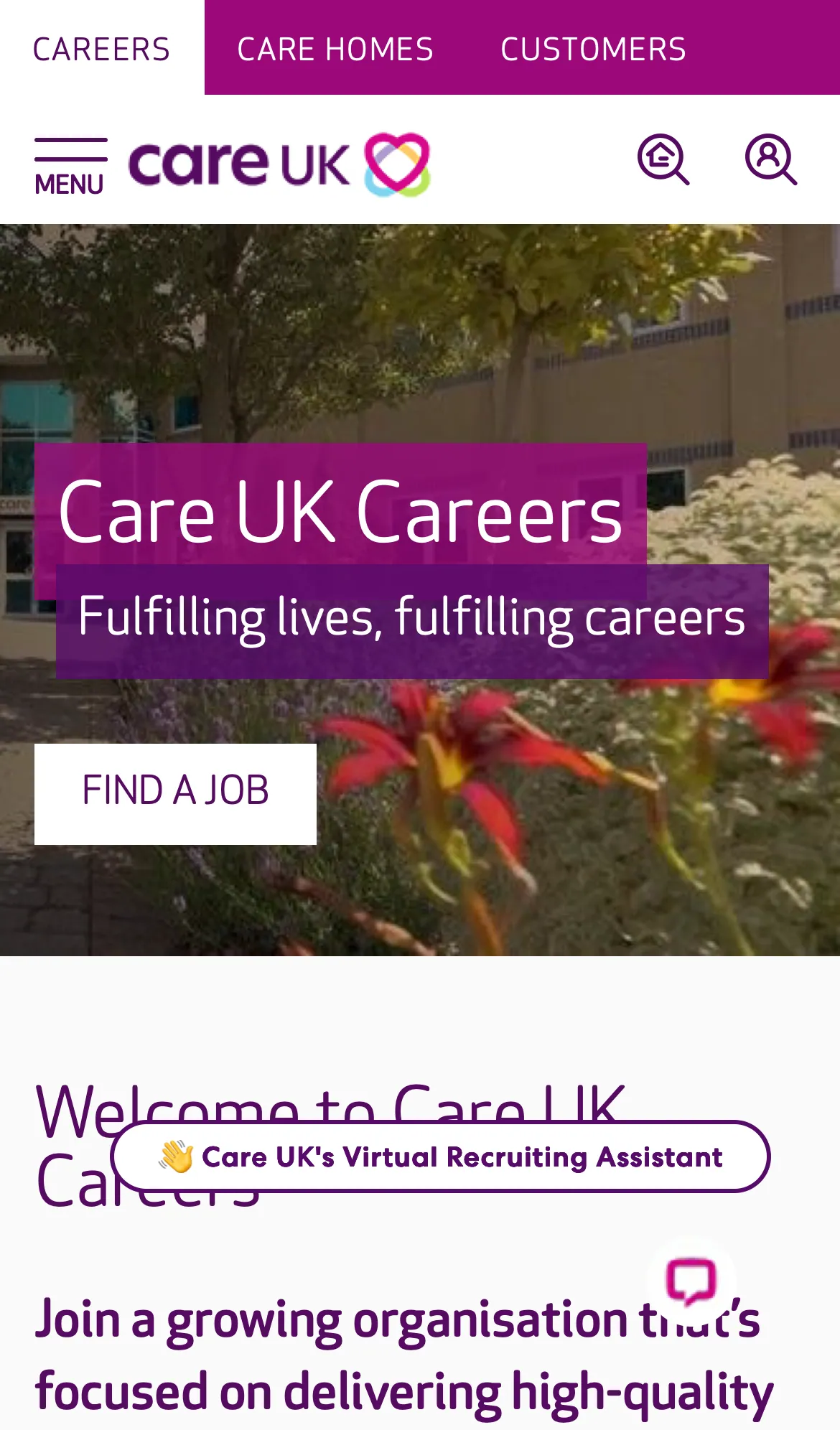 A prospective applicant, care assistant, nurse, hospitality role, wants to understand what working at Care UK is like and find a job to apply for.